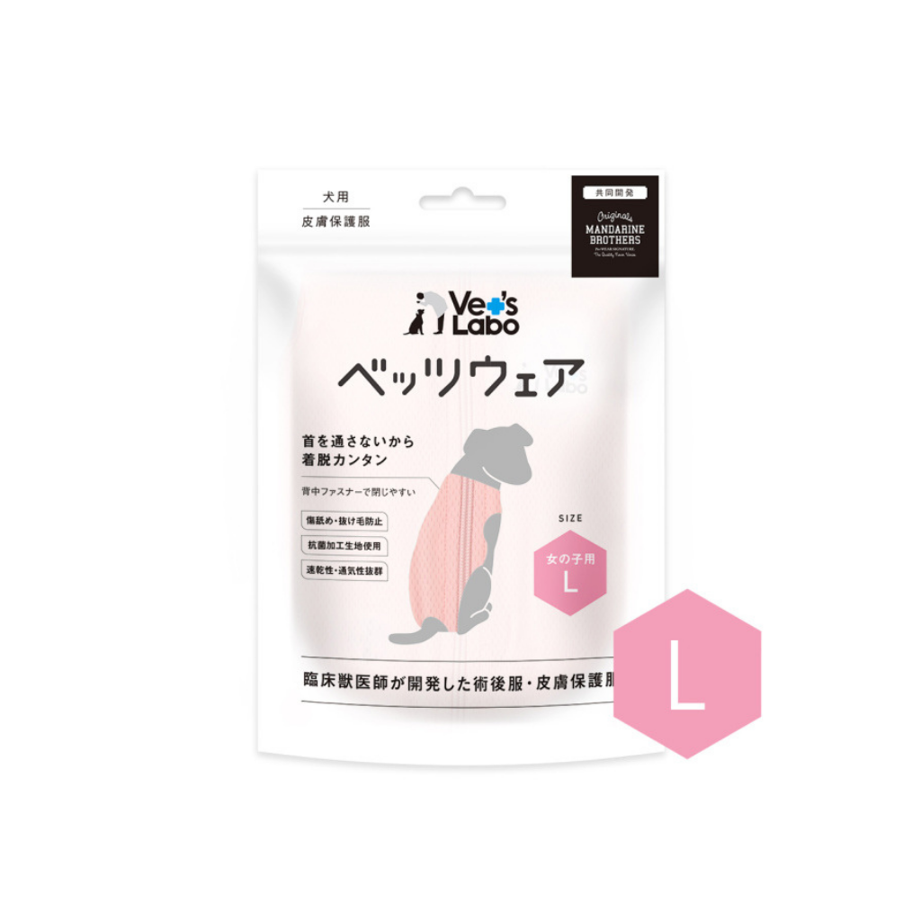 Co-developed by Dr. Aya Hideshima from Vet’s Labo, Vet’s Wear Post-Surgery and Protective Skin-tight Suit is a modern alternative to the traditional e-collar. This innovative suit provides effective wound protection and prevents your pets from scratching, licking, and biting due to allergies, skin conditions, or surgical pain. Unlike hard plastic e-collars, which can cause stress and discomfort, Vet’s Wear is designed to be comfortable and stress-free, making it suitable for both active and less active breeds.